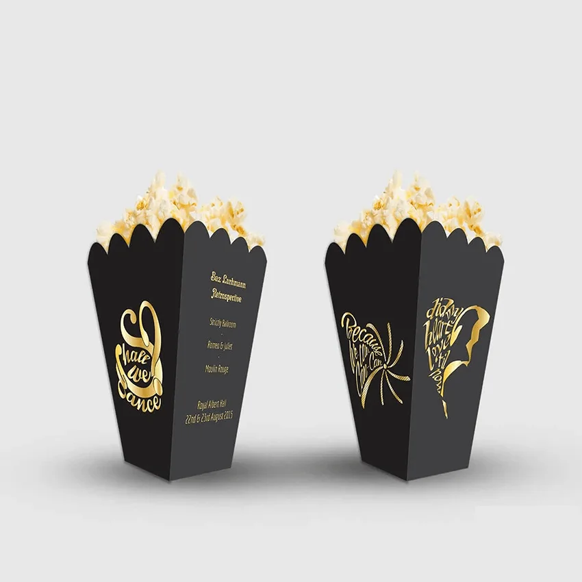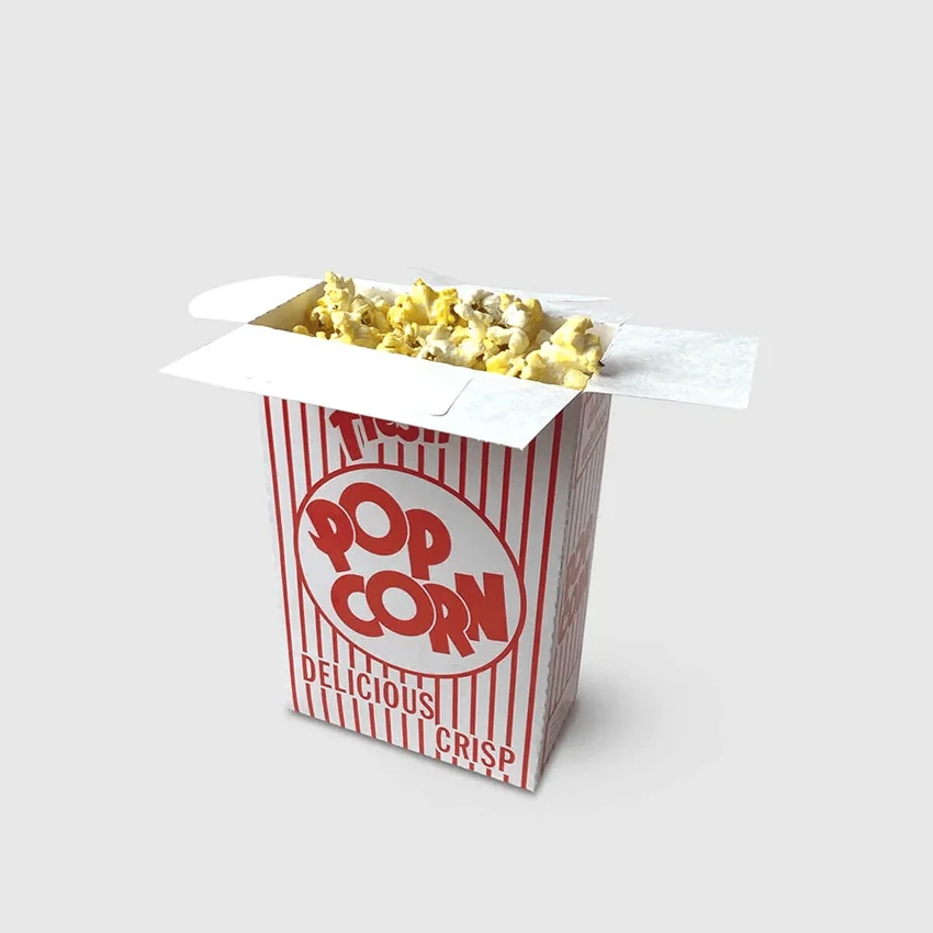 From classic red-and-white stripes to modern branding, your popcorn boxes can be fully personalized. Add your brand logo, catchy slogans, or themed artwork. We offer gloss, matte, and UV finishes to give your packaging a professional look.